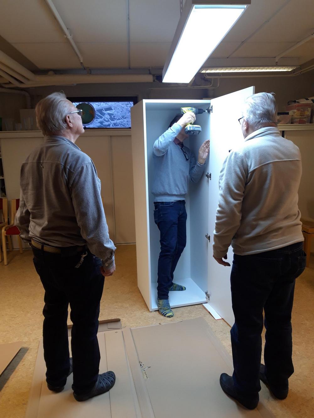 19.1.2023 saatiin käsityökerholaisille mukavasti tervetullutta kaappitilaa Havunneulaan. Näppärä työryhmä kokosi nopeasti ja hyvällä fiiliksellä kaksi Ikean tilavaa kaappia.