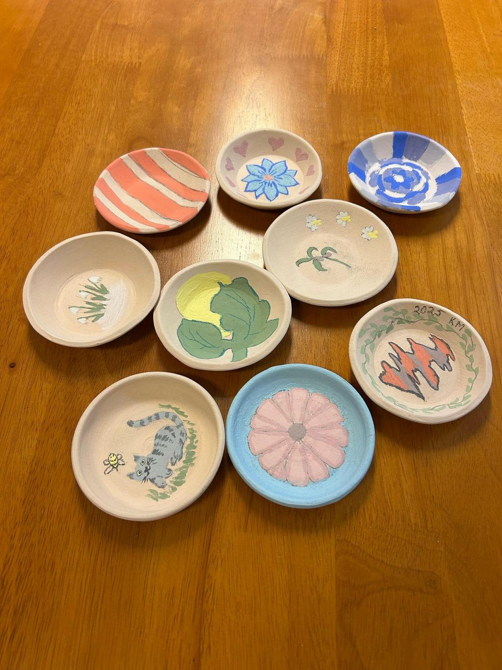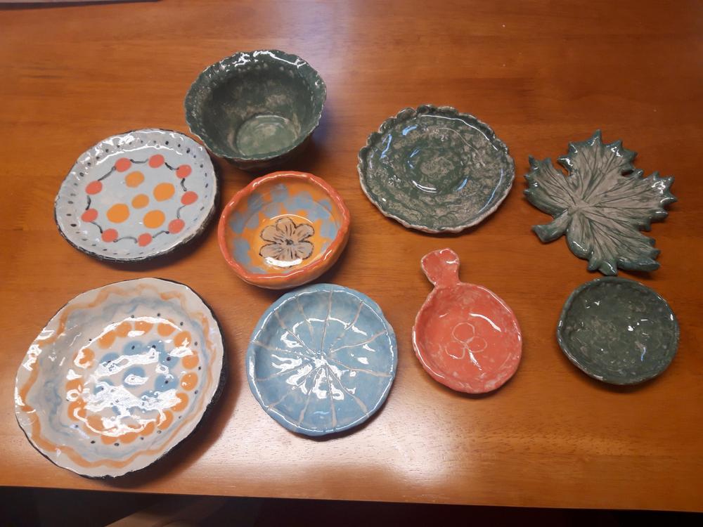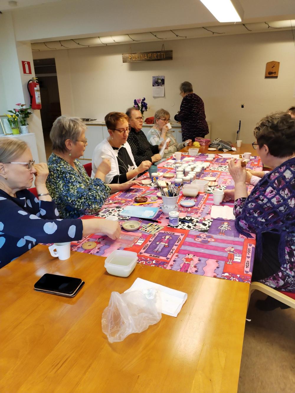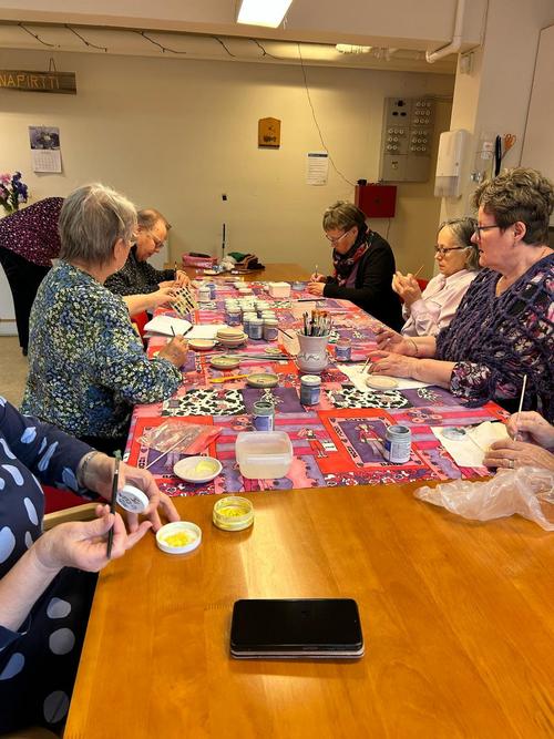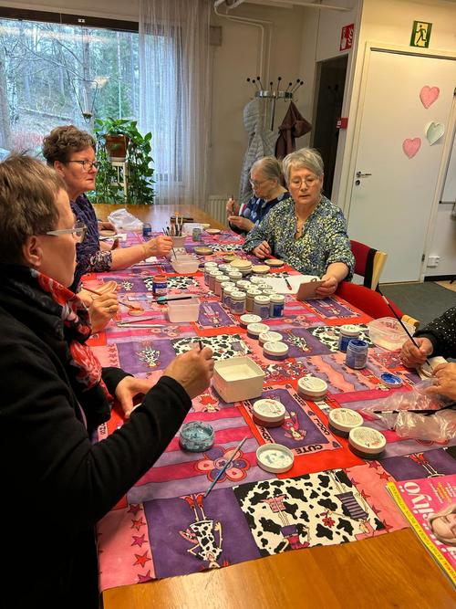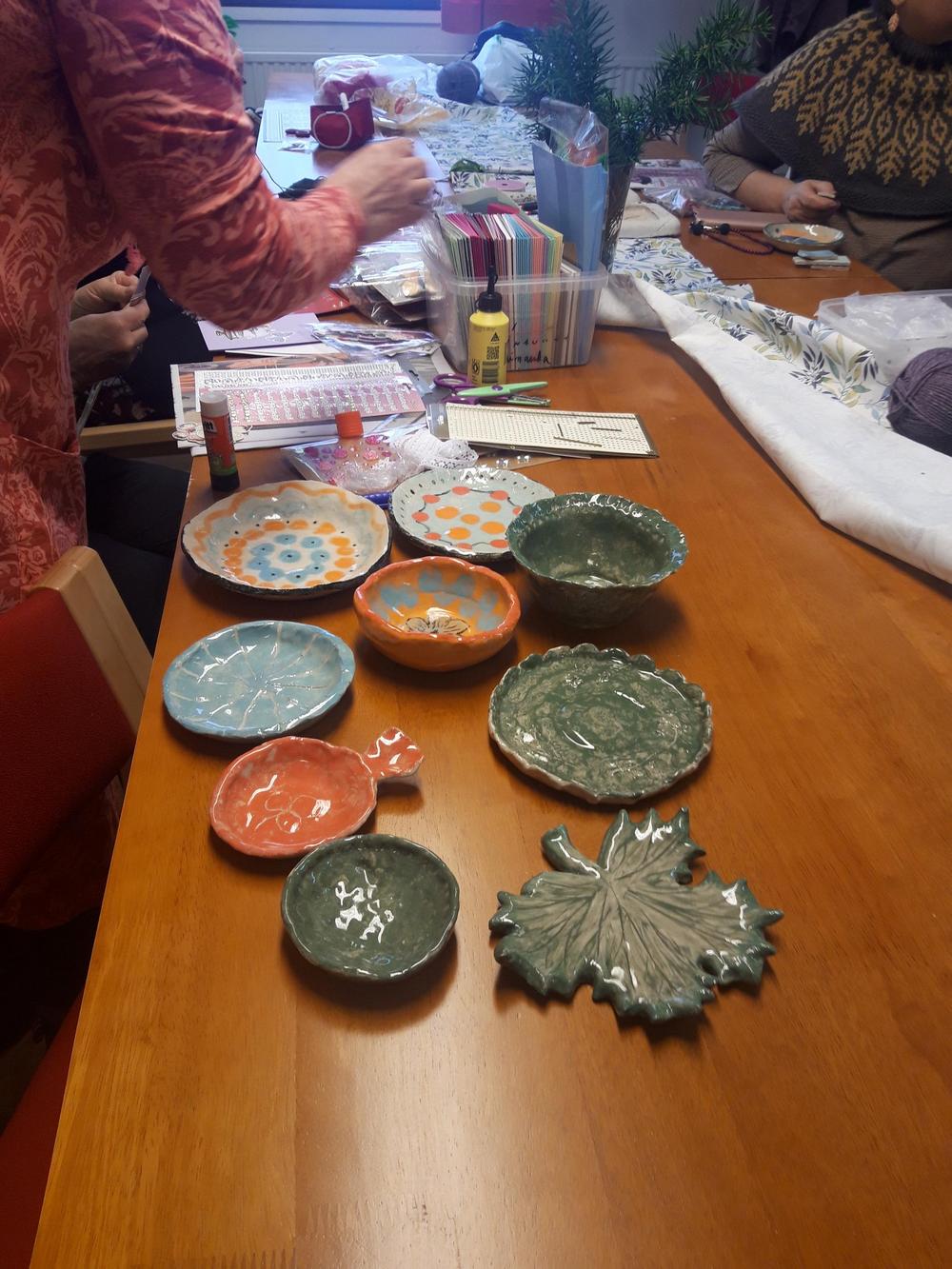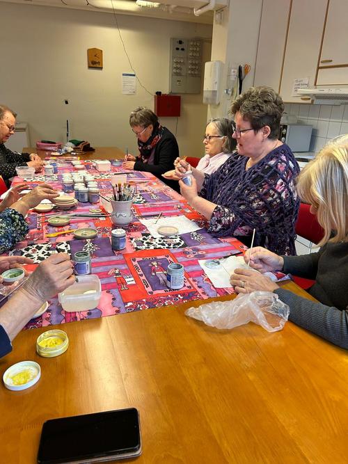 Helmikuussa 2023 askartelukerholaiset tekivät savitöitä Pirjo S. opastuksella.