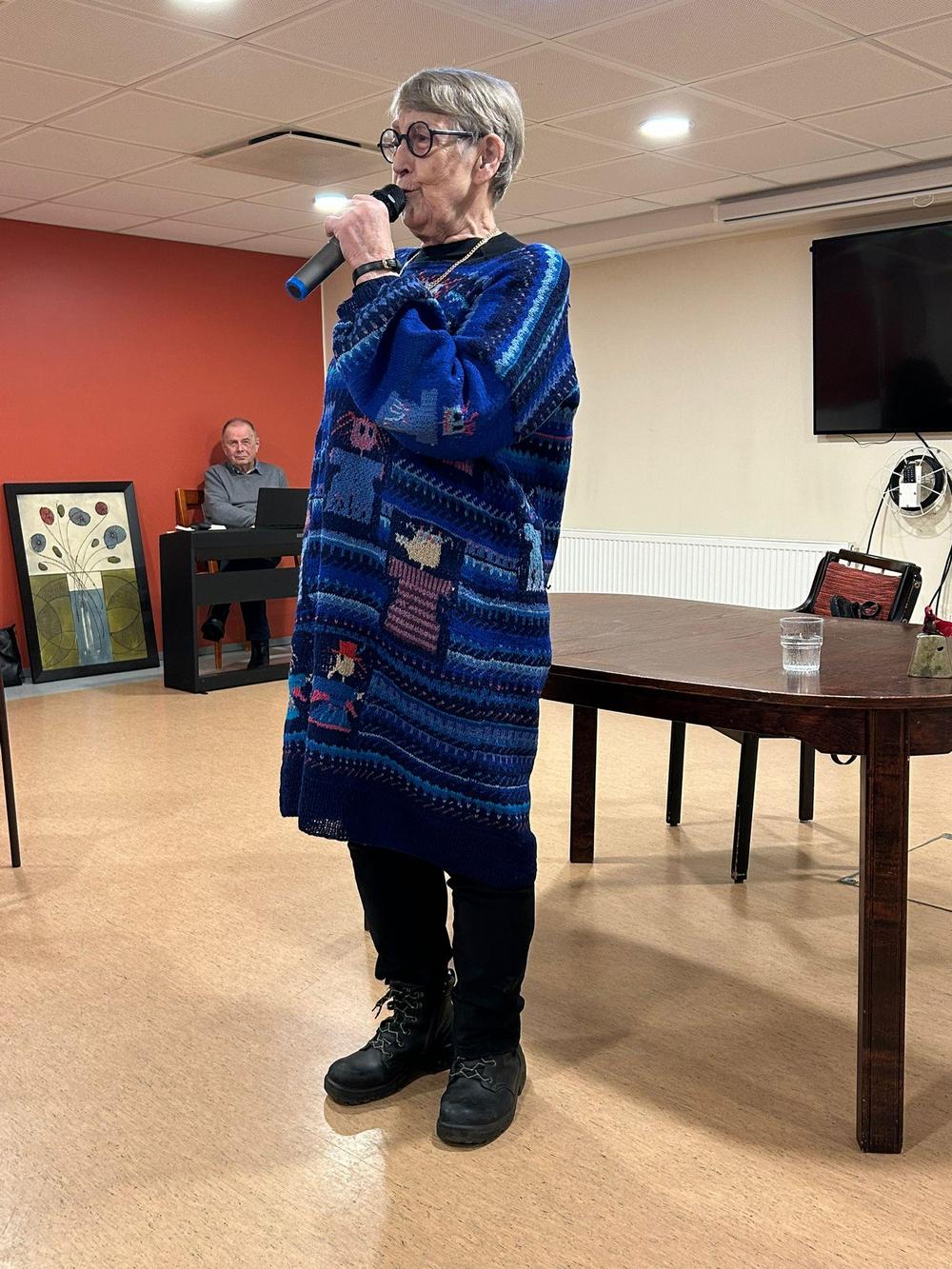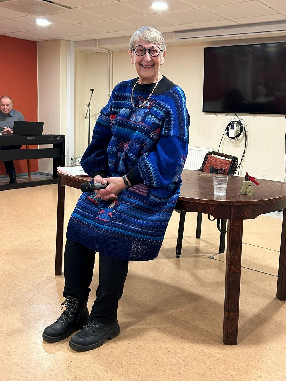 Tiistaikerhossa 14.10.25 meitä hauskutti näyttelijä, koomikko ja kirjailija Jenni Kokander