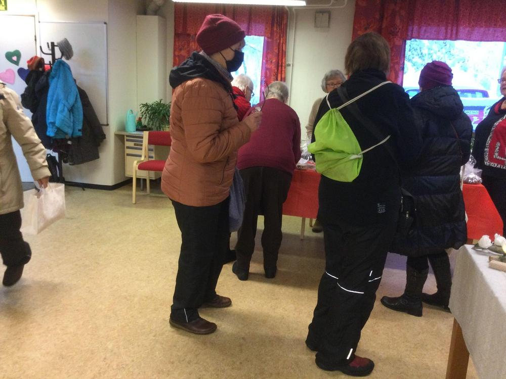 Myytävänä oli tarpeellista, kaunista ja herkullista jotka vaihtoivat omistajaa rennossa joulutunnelmassa.