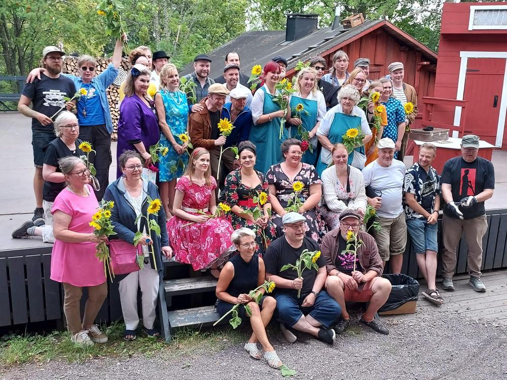 Olimme kauniina elokuun sunnuntaina katsomassa Markku Pölösen tekstiin ja Reetta Ristimäen sovittamaa ja ohjaamaa Onnen maa-tangomusikaalia Järvenpään kesäteatterissa, Meitä oli yli 40 osallistujaa.