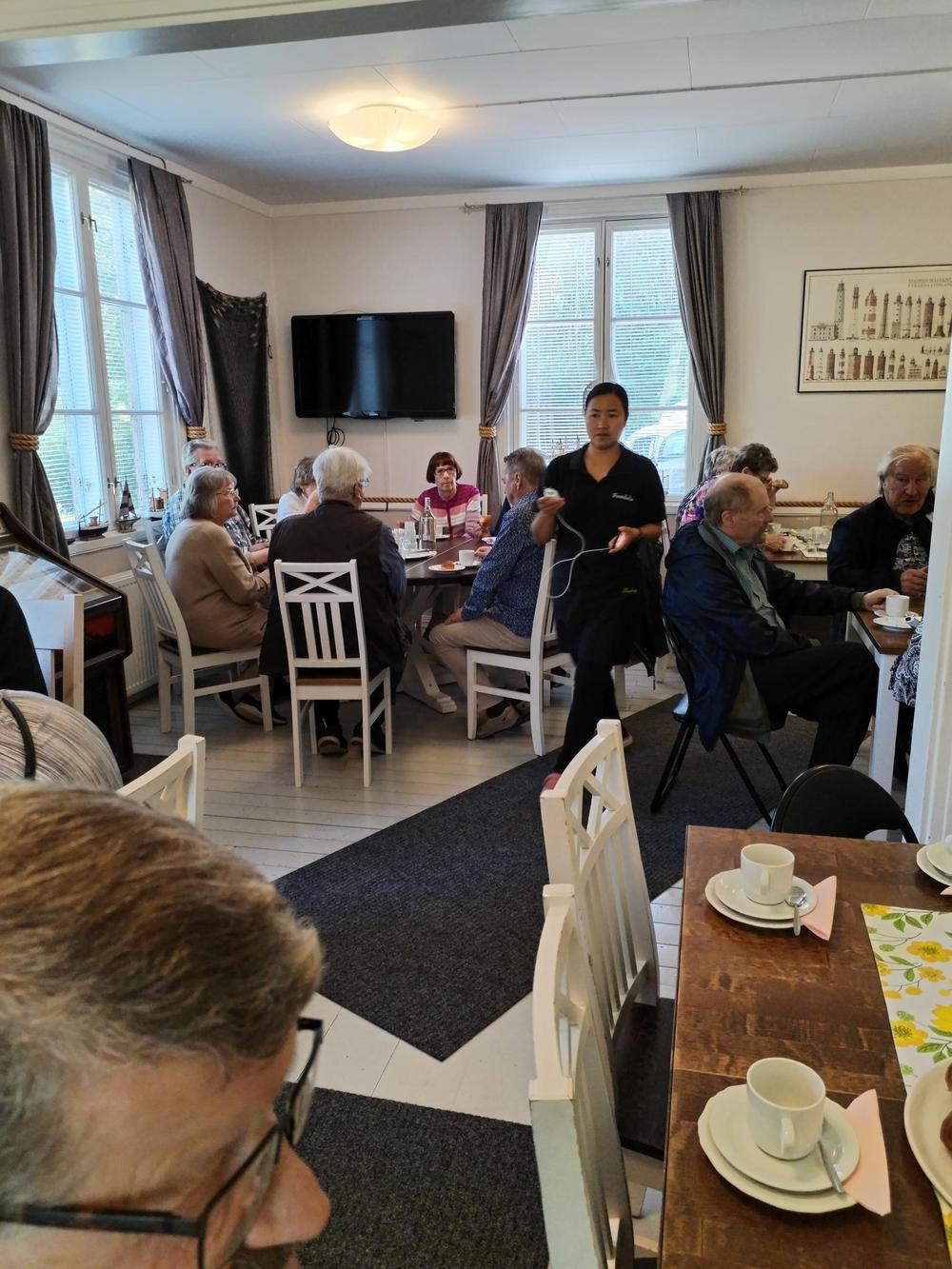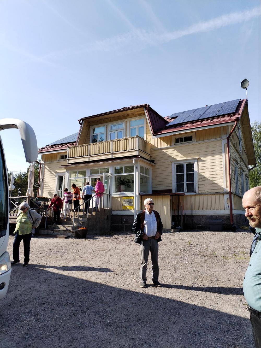 Bussimme kierteli ympäri Hankoa, jossa ihastelimme paikkakunnan kauniita merellisiä maisemia ja vanhaa arkkitehtuuria oppaamme johdolla. Mukavan reissun lopuksi kävimme vielä hyvillä pullakahveilla Villa Kosthall'issa Skogbyssä.