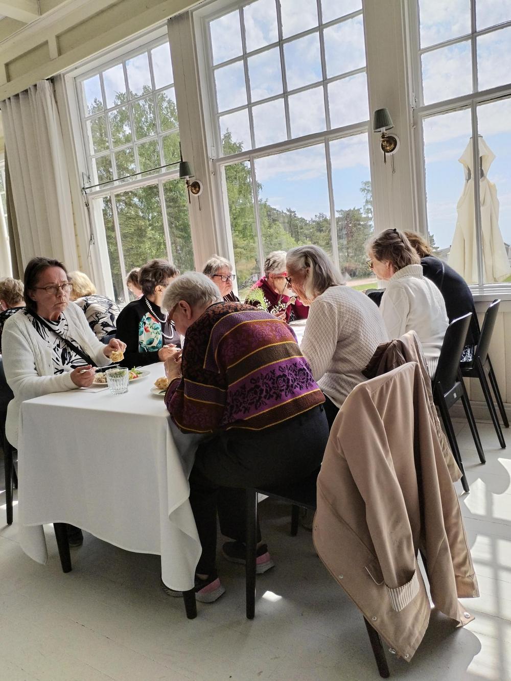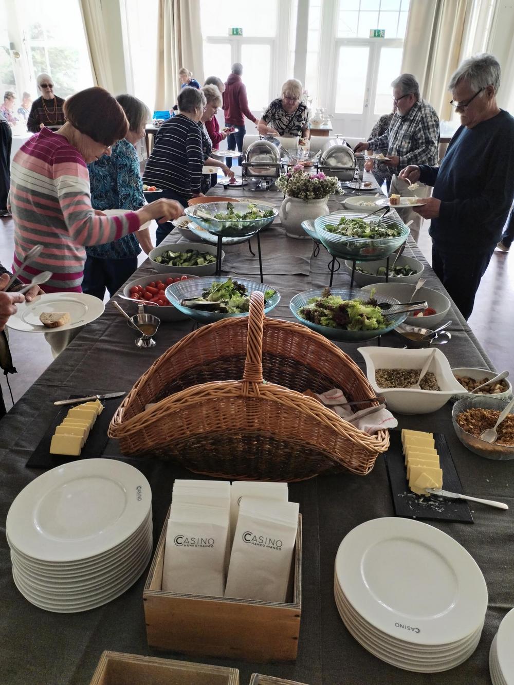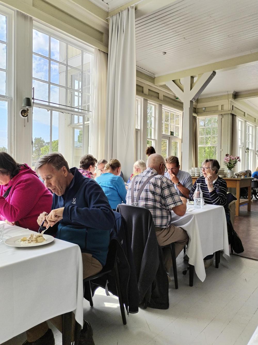 Bussi lähti taas liikkeelle kohti uusia seikkailuja ja kohti Suomen mantereen eteläisintä paikkaa Hankoa. Opas Leena Immonen oli bussissa mukana ja johdatti meidät ruokailemaan Hangon Casinolle. Lounas oli monipuolinen ja herkullinen. Ryhmäkuvaan saimme meidän koko porukan, noin 50 henkeä.