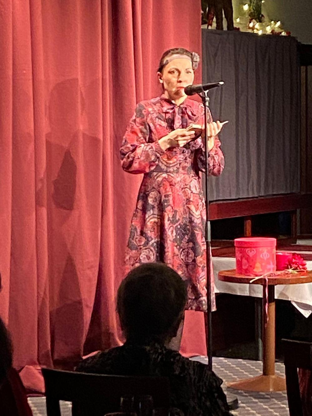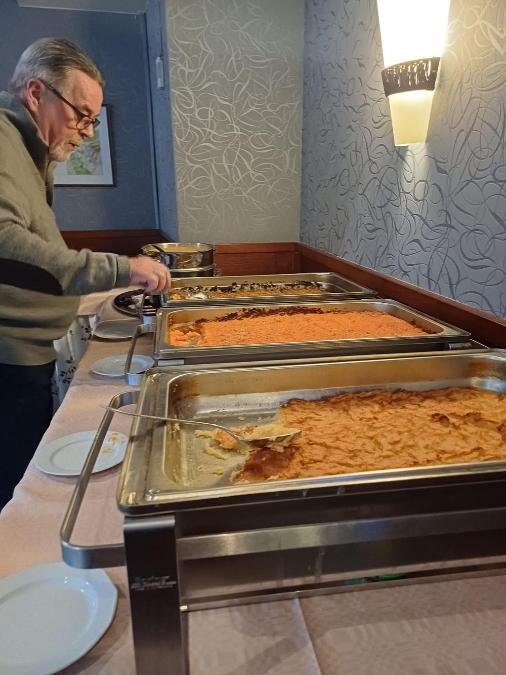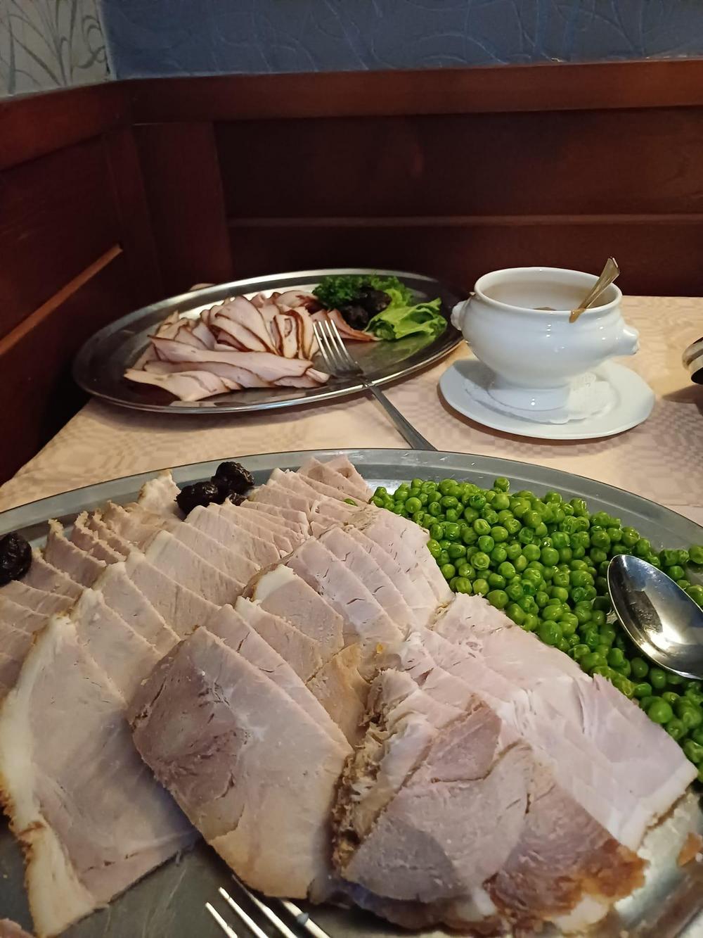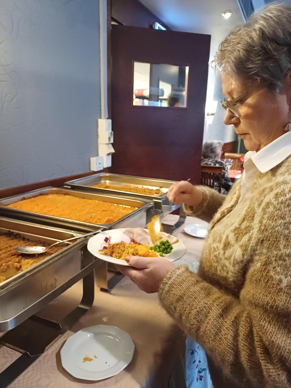 Jouluruokailumme oli teatteriravintola Nyyrikissä, Käpylässä. Oli lohta,silliä,rosollia ym. ja kinkkua,kalkkunaa ja laatikoita. Torttukahvit jälkiruuaksi.Hengenravinnoksi Eeva Rantinojan monologi,runo-ja lauluesitys "Aikamatka menneisyyteen" Kyllä minä muistan... Ravintola oli melkein täysi,kun meitä ruokailijoita oli yli 60.
