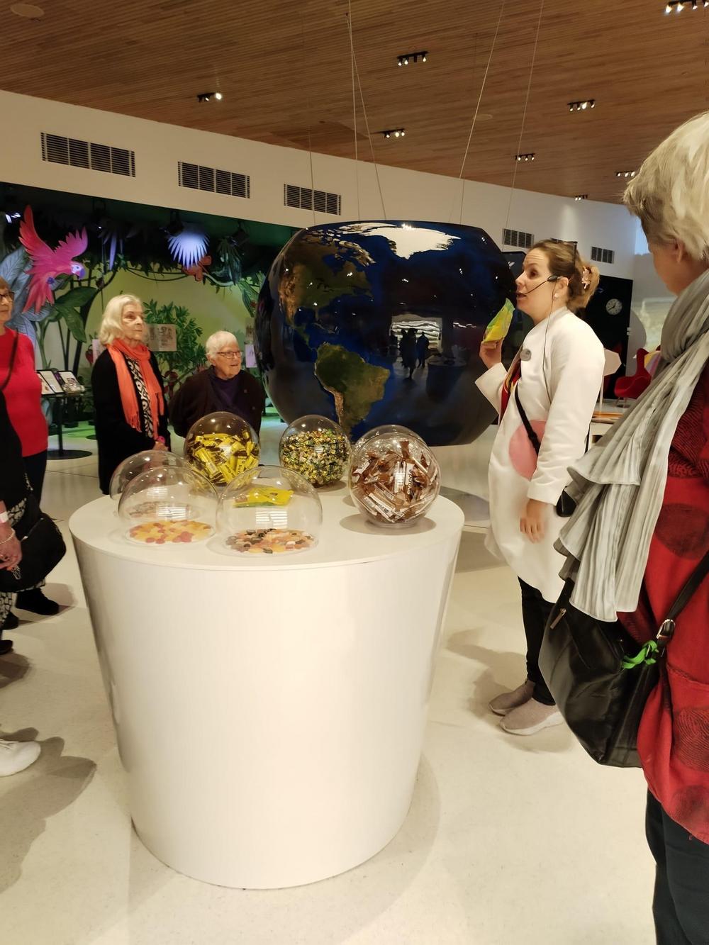 Parikymmentä makeasta ja Fazerin historiasta kiinnostunutta kerholaista kokoontui Fazer Experience Vierailukeskuksen aulaan. Sieltä aloitimme oppaan vetämän noin tunnin pituisen esittelykierroksen. Ohjelma jatkui Fazerin historialuennolla ja kaiken kruunasi Mikko Alatalon konsertti. Saimme vielä tuliaisiksi lahjakassin ja kyllä oli makeeta mahan täydeltä. Tilaisuuden järjesti Fazer ja Vantaan kaupunki Vanhustenviikon tapahtumana.