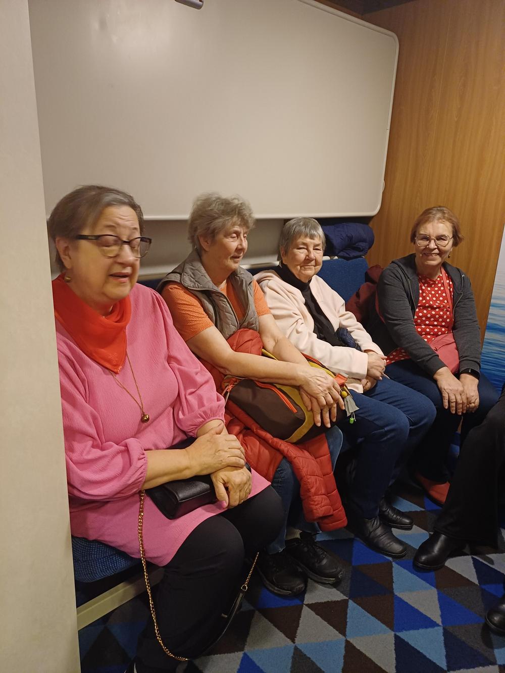 Tuttuun tapaan Backalenin bussi haki meidät Koivukylästå ja ajoi Länsisataman T2 terminaaliin.Siellä meitä odotti Eckerön Finlandia laiva. Kun maukas aamiaisbuffetti oli nautittu, olimmekin jo Tallinnassa. Siellä 30 hengen porukka hajaantui ja lähti jatkamaan matkaa, kuka taksilla,ratikalla tai kävellen kohti Tallinnan keskustaa.