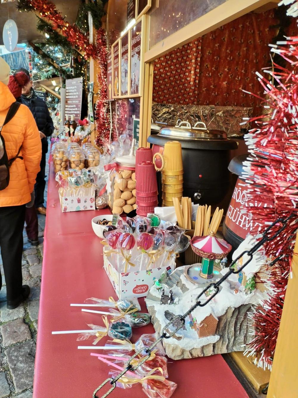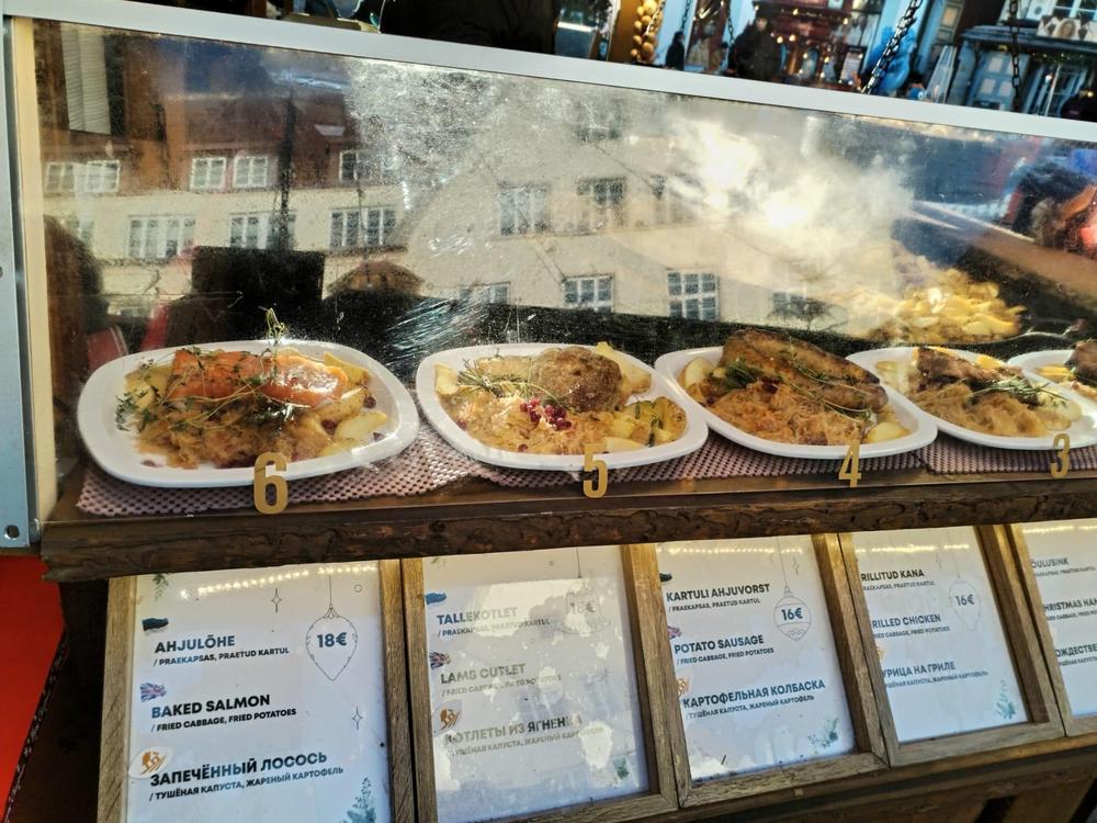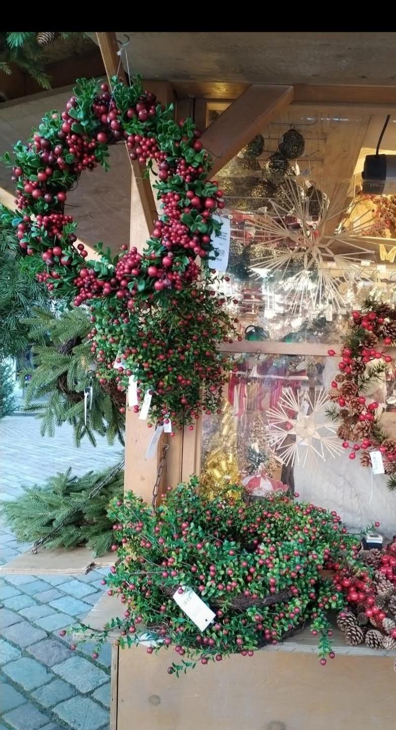 Erilaisia havukransseja ja kudottuja tonttumyssyjä Tallinnnan joulutorilla